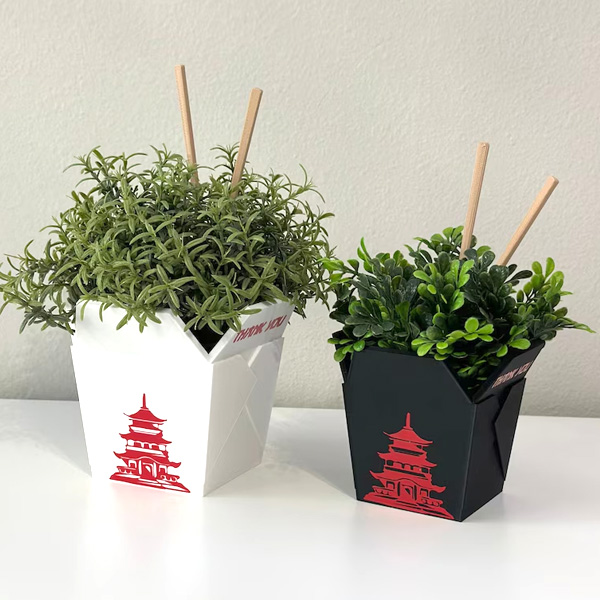 Add a playful twist to your plant collection with this Chinese Take-Out Box Planter! 3D-printed and designed to look like the classic take-out container, it comes with two free chopsticks for extra charm. Perfect for succulents, cacti, or small houseplants, this quirky planter makes a unique gift for plant lovers and foodies alike.